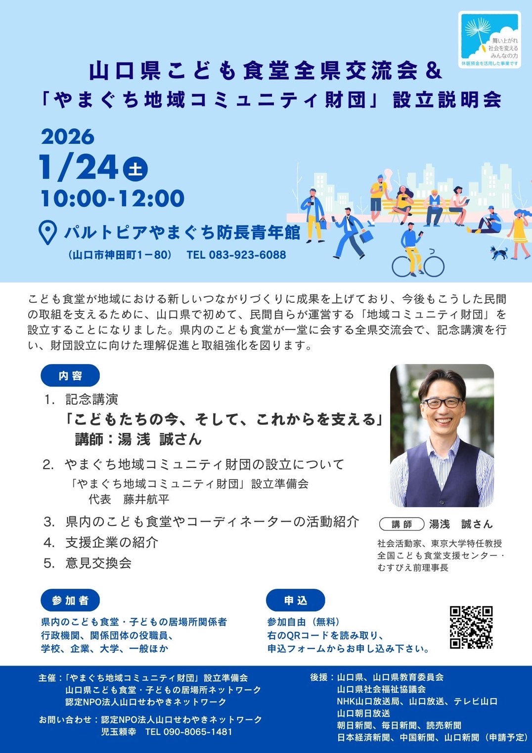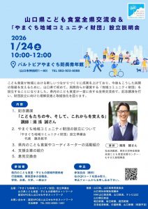 市民活動支援センター NEWS TOPICS NEWS TOPICS一覧を見る [26.01.27] 情報ひろば2026年1月号 [26.01.01] 地域活動・市民活動情報誌コネクト2026冬号 [26.03.15] 【登録団体の方へ】“知る!つながる!しゅうなん市民活動フェスタ”イベント概要 [26.01.21] 【助成金説明会&相談会】きらめき活動助成金/しゅうなん元気活動助成金 [26.01.27] 情報ひろば2025年12月号 [25.12.10] ポスター作成講座 -パっと目につくデザインのコツを知ろう!- [26.01.27] 情報ひろば2025年11月号 ~イベント情報~ [25.11.10] しゅうなん市民活動支援センター 臨時休所のお知らせ 1月の催しものなど [26.01.28] 令和7年度ボランティア養成講座 [26.01.25] 周南おりがみ研究会 1月例会 [26.01.24] 発見!周南学びカレッジ 1月 [26.01.24] 山口県こども食堂全県交流会&「やまぐち地域コミュニティ財団」設立説明会 [26.01.18] きららでキラリ!新企画提案コンテスト 成果報告会 2月の催しものなど [26.02.28] 中山間地域づくり 収穫のつどい2025 [26.02.27] 周南消費者協会 第4回消費者セミナー [26.02.23] 周南おりがみ研究会 2月例会 ニュース一覧を見る センターからのお知らせ センターからの報告 その他